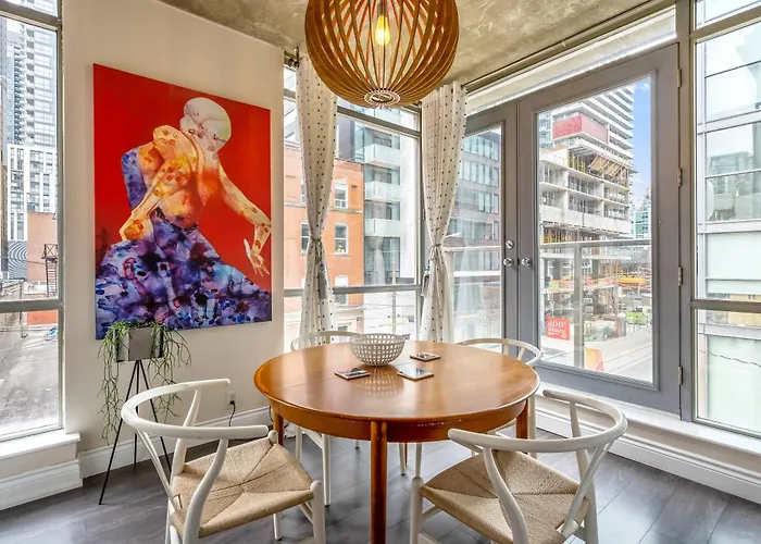 Den er placeret 550 meter fra Museum of Television og ca. 350 meter fra YYZ Artists Outlet. Denne ferielejlighed ligger tæt på Second City Toronto 550 meter afstand til St Patrick metrostation. Queen Street Warehouse og Rudy kan man nå inden for en 5 minutters gåtur fra indkvarteringen. Det tager ikke lang tid at komme til St Michael's Cathedral i bil.